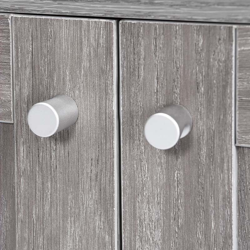 Matte silver door handle, classic shape, elegant look. Creates a retro visual effect together with the minimalist cabinet design.