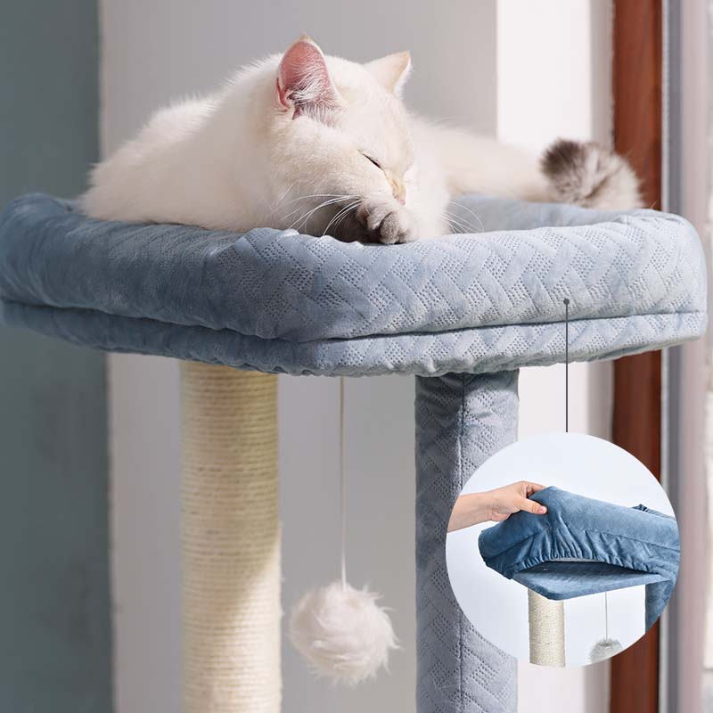 Removable and washable cover on the perch covers a wrapped board. Specially designed easy-to-clean fabric makes daily cleaning easier and more convenient.