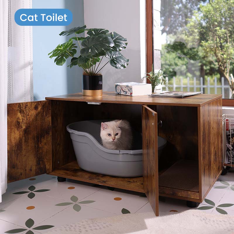 A cat toilet, a side table or use it for storage. Antique brown color blends nicely into your home decor.