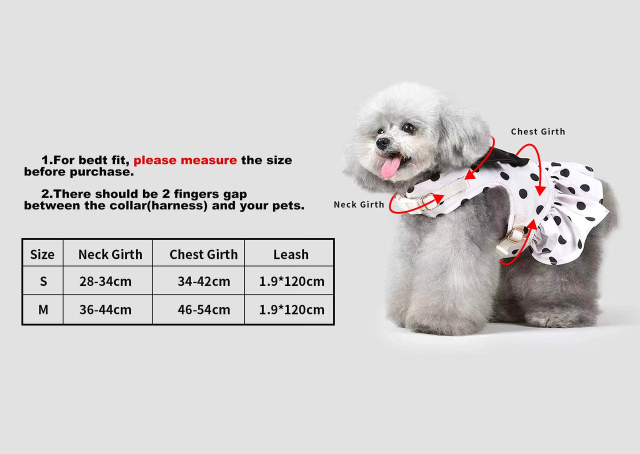 Polka Dot Leash & Harness Set, Classic Pattern, Comfortable and Breathable - HAMATE