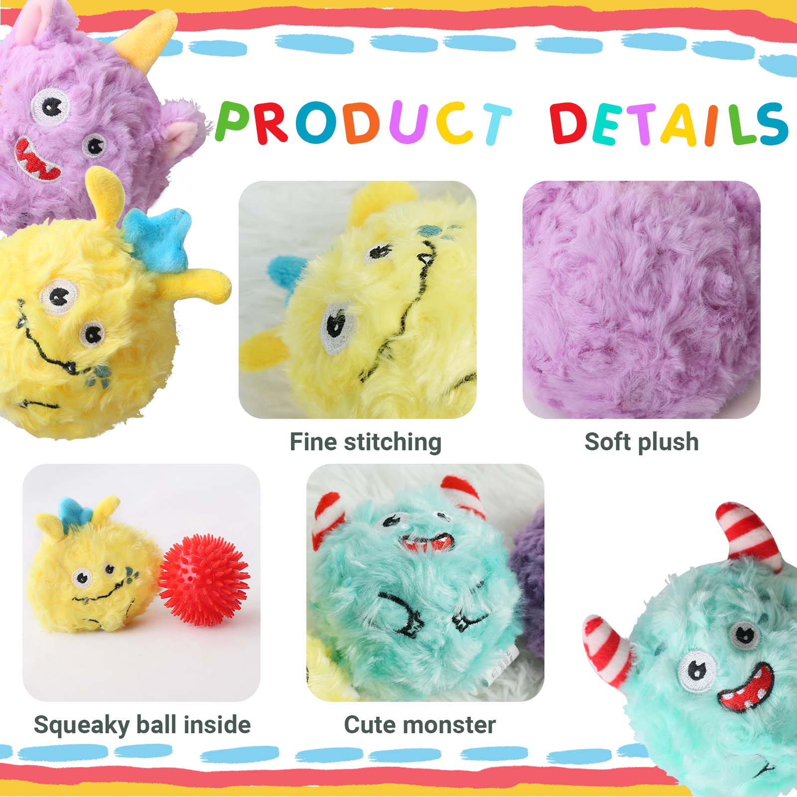 Squeaky Monster Dog Balls Set of 3 for Dogs - DKING