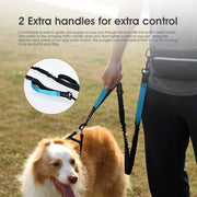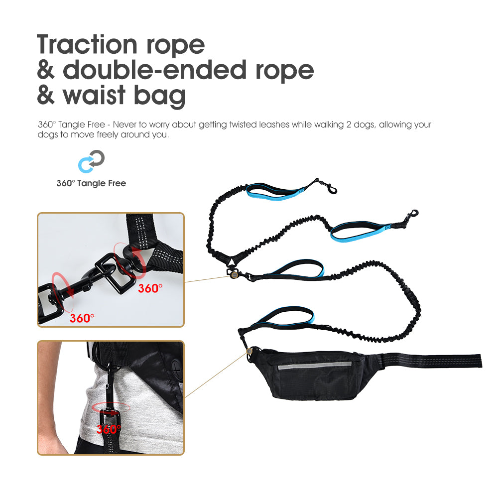 unique bungee Design helps to absorb the shock of quick movement when used with energetic and active dogs, and reduces the feeling of being pulled, The lenath of the bungee can be extended from 23 to 35 inches with strong pulling force, which gives your dog enough room to run in front of you or beside you.
