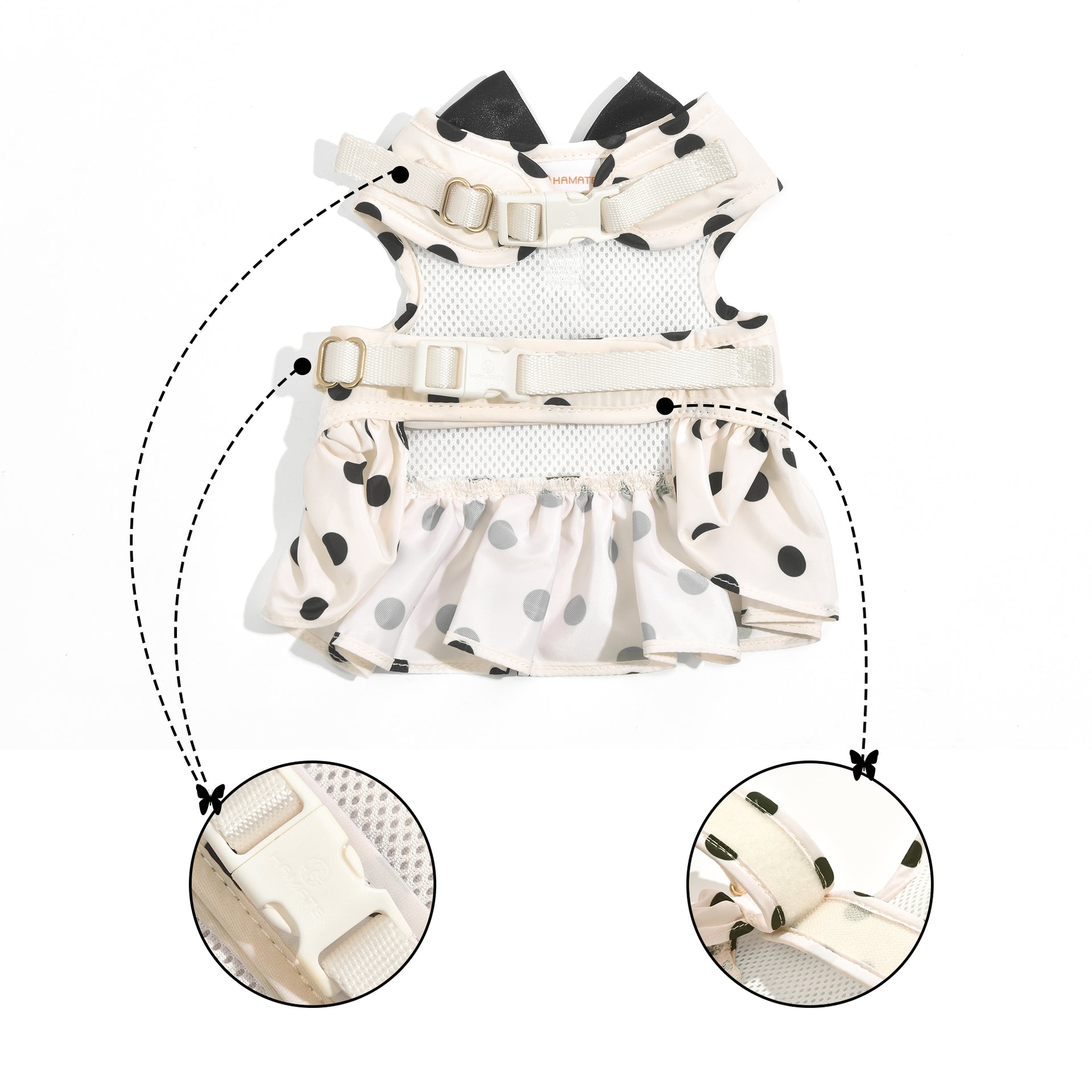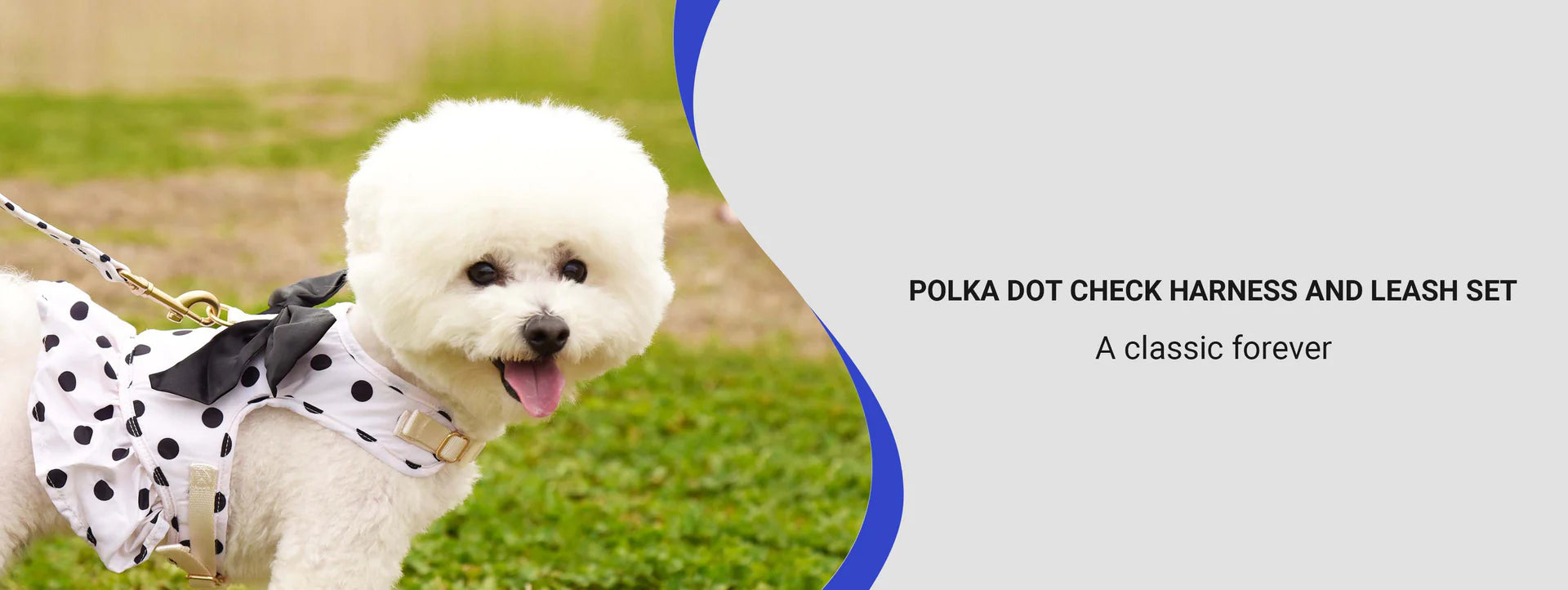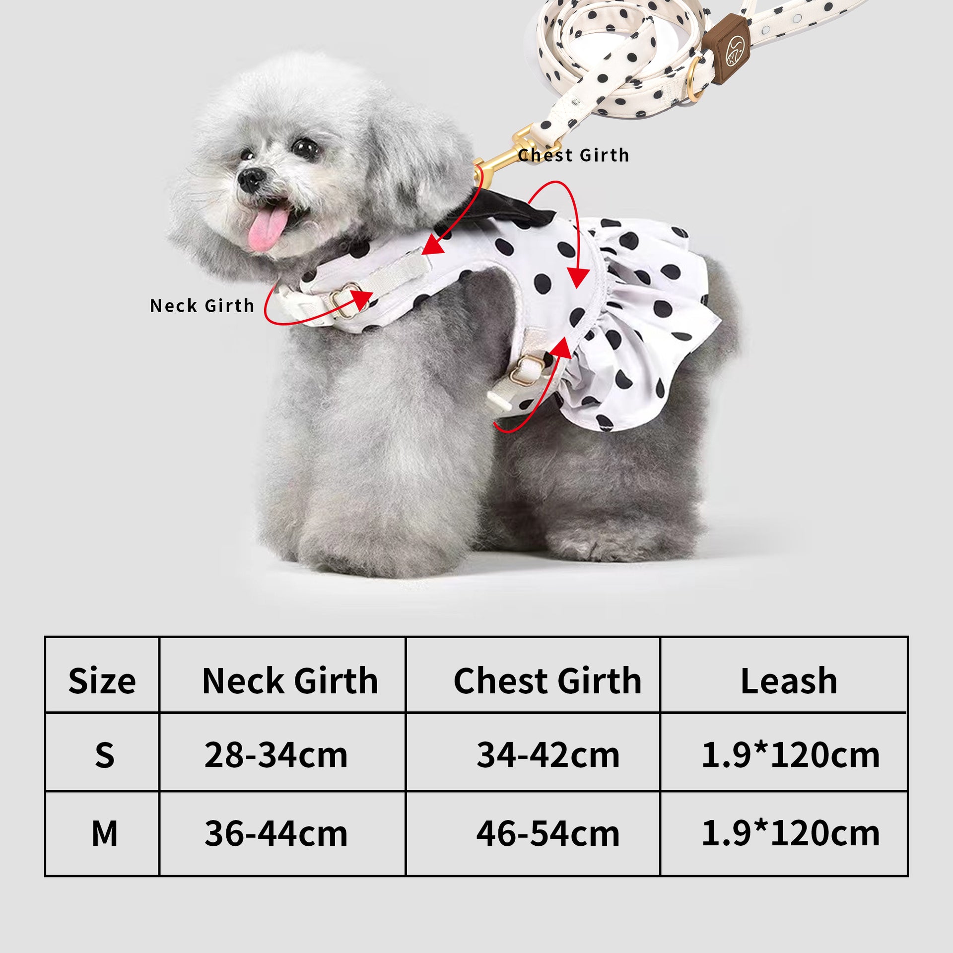 Polka Dot Leash & Harness Set, Classic Pattern, Comfortable and Breathable - HAMATE