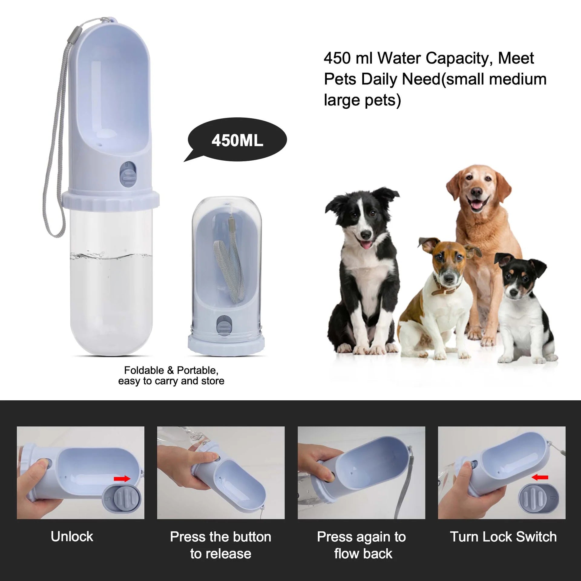 After the pet drinks the water down, you can slide the drinking feeder to turn it into a small portable bottle.