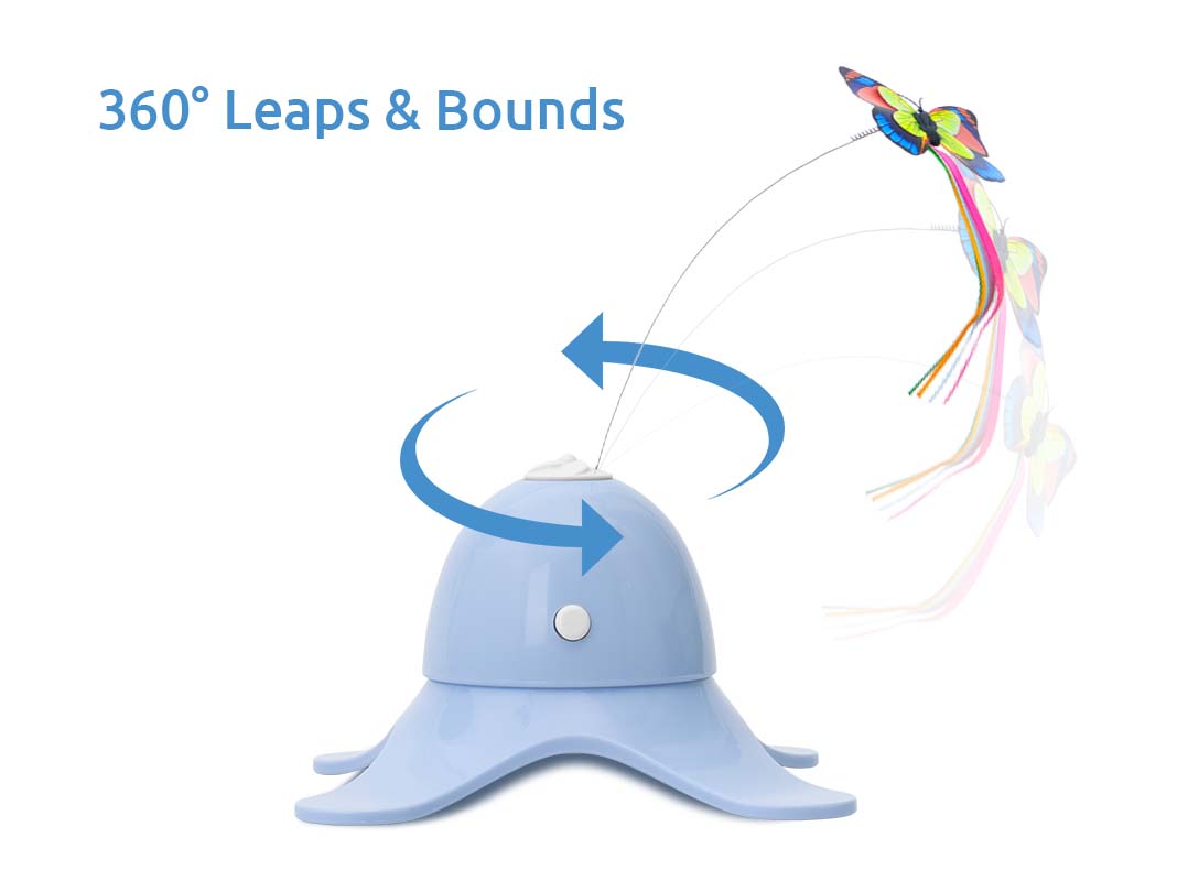 - The lifelike butterfly flutters around in the air, easily enticing cats to pounce and play.