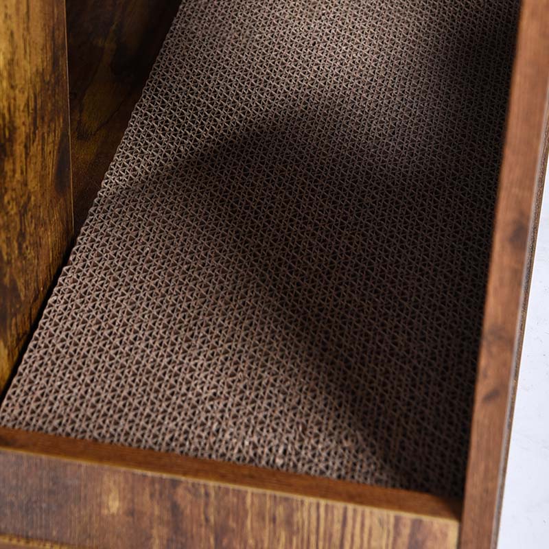 The front and side dual entrances allow kitty easy access into the cabinet. The scratching board at the entrance effectively prevents litter scatter