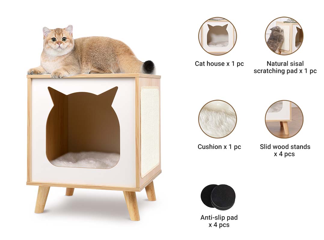 Can be placed anywhere at home, used as cat condo, side table or nightstand.