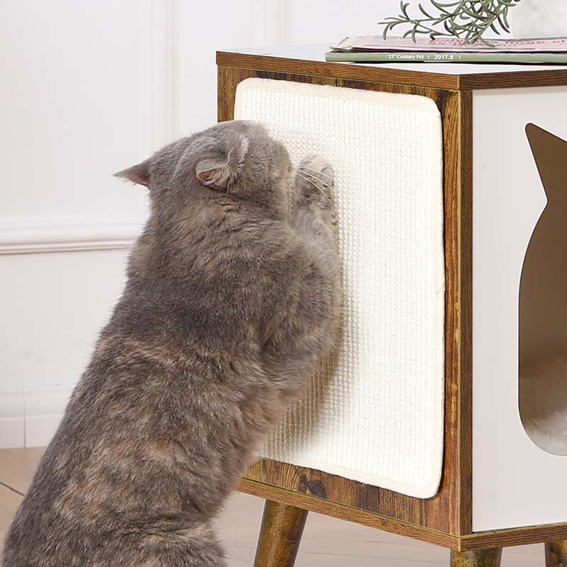A large piece of natual sisal scratching pad allows cats to scratch and last to use.