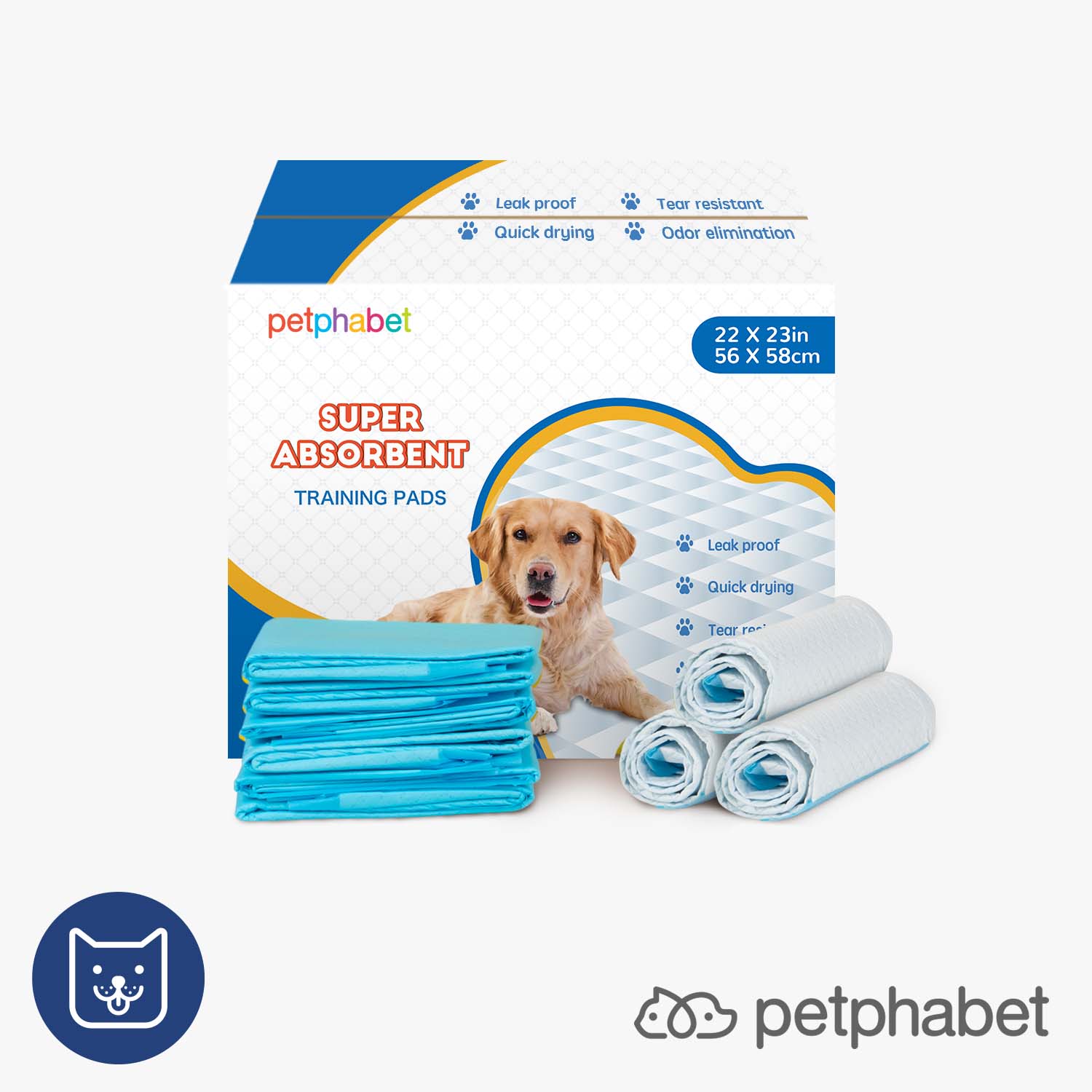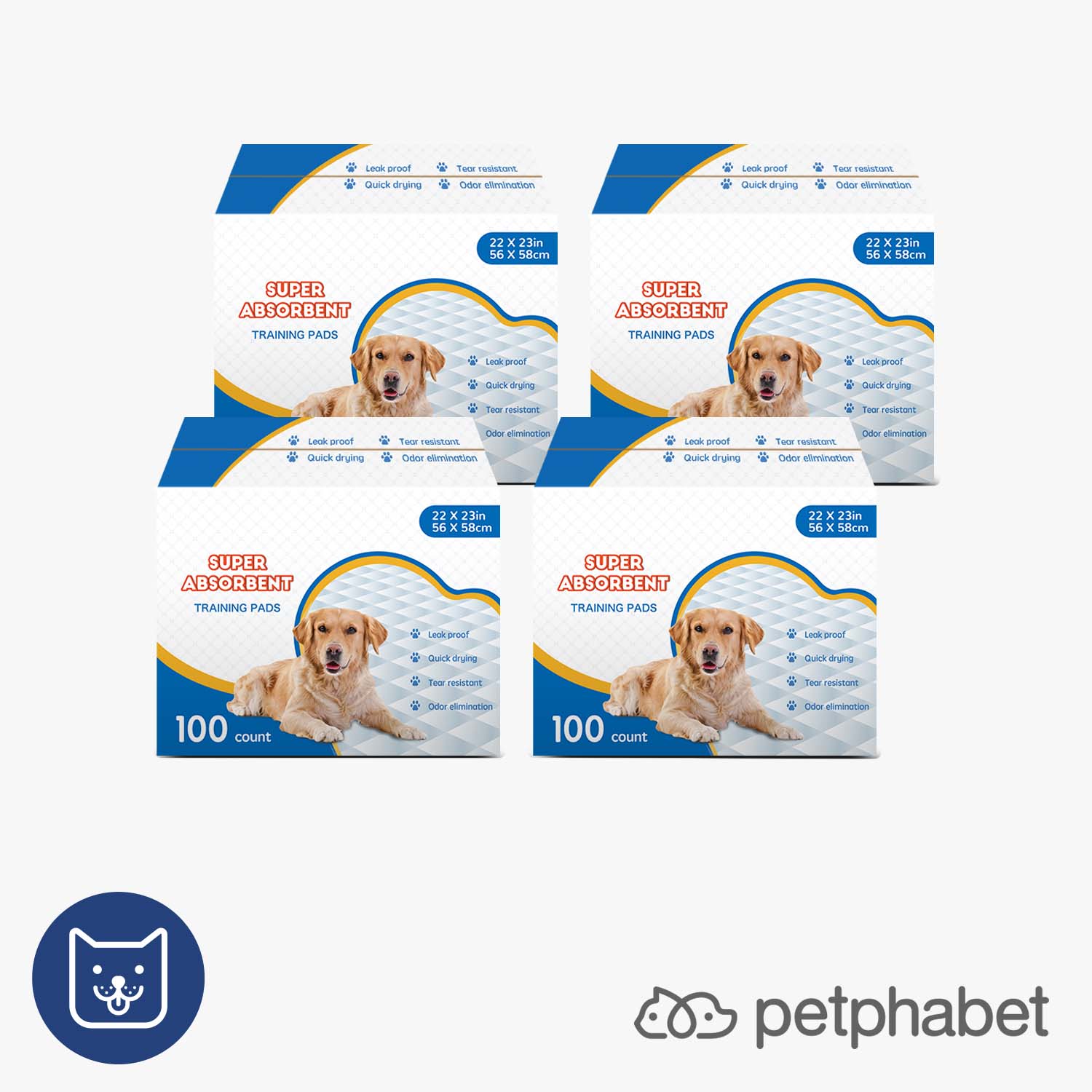 Dog Training Pads 22" x 23", 100 Counts - Petphabet